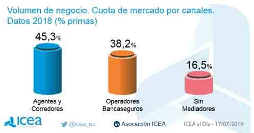 Por ramos de seguros, la banca intermedia el 67% del negocio de Vida, aunque en los últimos años se aprecia un incremento de la mediación tradicional. Por su parte, en No Vida se aprecia un incremento de agentes y corredores desde 2010, aunque con niveles inferiores al inicio del siglo. En general, sin grandes cambios, según ratifica ICEA.