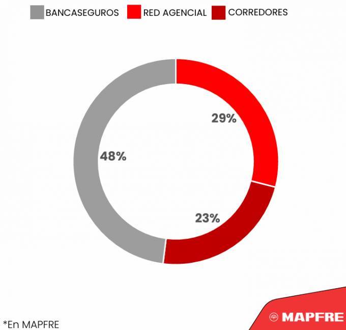 Pero, si se profundiza en la mediación tradicional, la red agencial de Mapfre aporta a la compañía el 29% de los clientes y los corredores el 23%.
