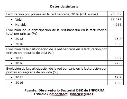 Son datos que se desprenden del Observatorio Sectorial DBK de Informa que concluye que durante 2016 se produjo un notable aumento de la participación de las entidades bancarias en la estructura del canal del sector asegurador, gracias al fuerte impulso del negocio de seguros de Vida, apreciándose paralelamente una pérdida de importancia de los mediadores tradicionales, más expuestos a los seguros de No Vida. El volumen de negocio de este canal en No Vida fue en 2016 del 13%, sin embargo en Vida su penetración llega casi al 73%.