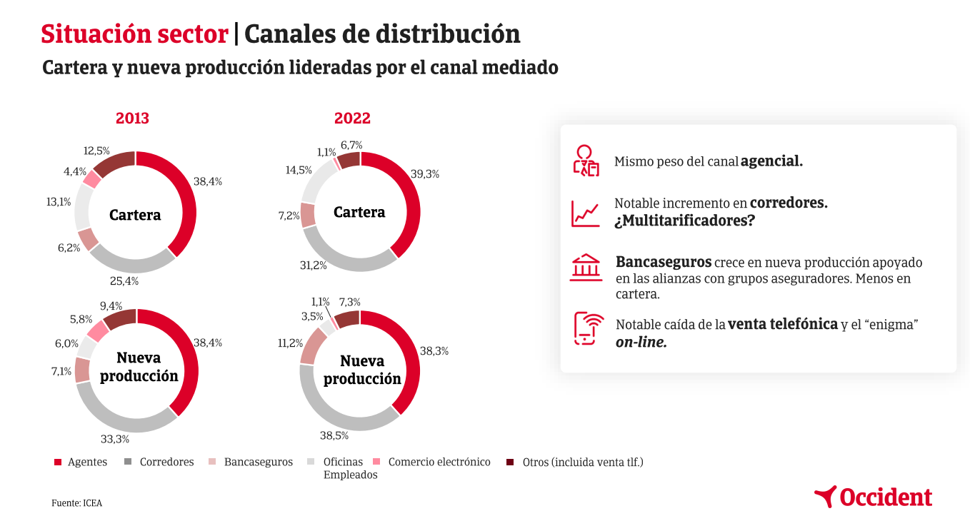 Todos esos puntos no los gana la banca, únicamente 2 pp, puesto que firman el 25% de las pólizas. Los otros 3 puntos que se deja la mediación son ahora negociados por la venta directa y el canal digital que se elevan hasta poseer una cuota del 7%.