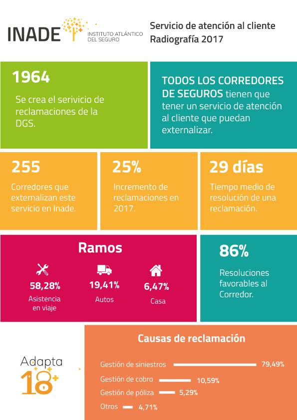 Inade destaca que desde el año 2016 se observa una tendencia de mayor número de reclamaciones presentadas a los corredores de seguros por sus clientes. Este porcentaje se incrementó en un 25% en 2017respecto al año anterior.