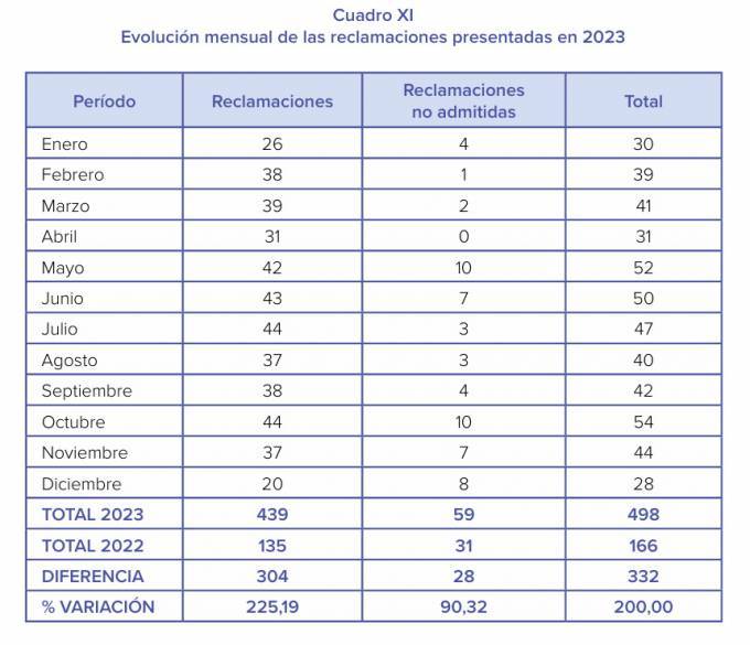 Estos distribuidores registraron entre enero y diciembre de 2023 un total de 439 reclamaciones frente a las 135 de 2022. De esta manera, registraó un aumento del 225,19%. Además, 59 reclamaciones no fueron admitidas.