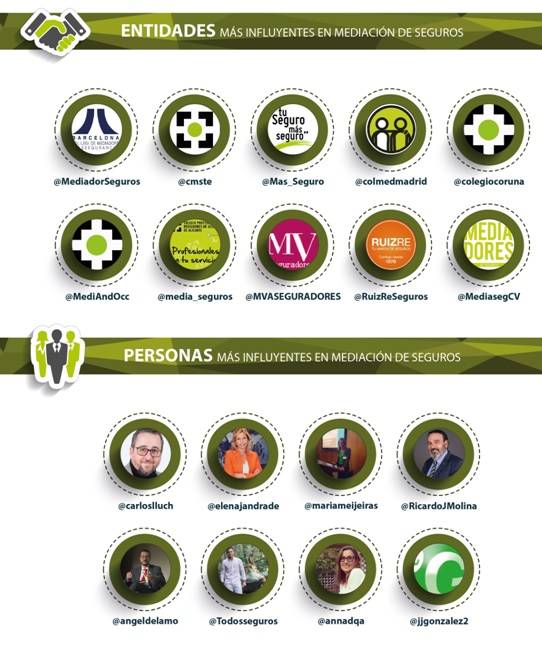 Entre las personales, entre los más influyentes de la mediación figuran @carloslluch, @elenajandrade, @mariameijeiras, @RicardoJMolina, @angeldelamo, @Todosseguros, @annadqa y @jjgonzalez2.