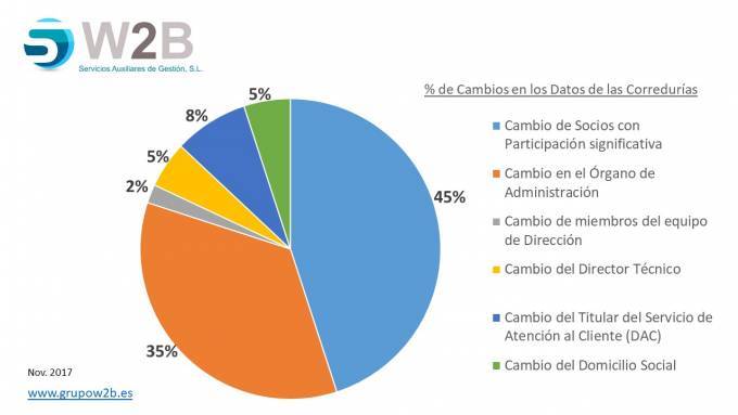 Los encargados del estudio destacan que tener los datos actualizados es una obligación estipulada en el artículo 52 de la Ley de Mediación dentro de los 10 días siguientes a la adopción de los acuerdos de modificación. Notifica también W2B que son muchos los casos que desconocen que en el caso de cambio de partícipes y socios, generalmente por compra-venta de acciones o procesos de sucesión, "es necesario contar con la preceptiva autorización de la DGSFP antes de llevar a cabo el traspaso o venta". Además, en el caso de que la trasmisión sea superior al 50% hay que presentar un nuevo programa de actividades para su aprobación.
