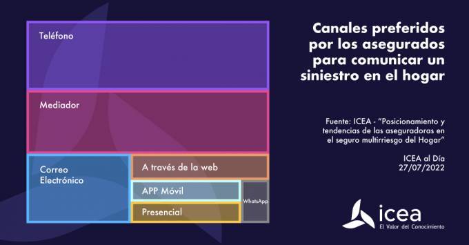 Dentro de las tendencias de las aseguradoras en el seguro Multirriesgo Hogar, los datos de ICEA confirman que en la relación entre clientes y compañías, cuando la comunicación está relacionada con la ocurrencia de un siniestro los principales canales son el teléfono y el mediador. La tercera vía más mencionada aparece el correo electrónico.