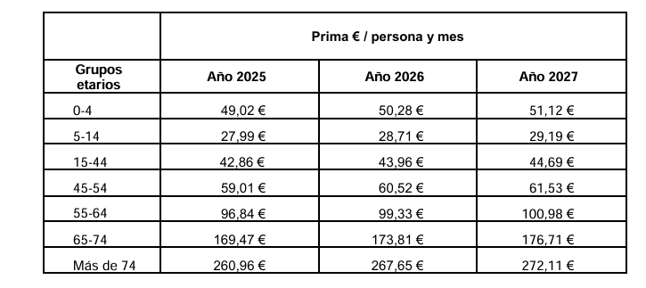 El incremento de prima del actual concierto se establece en el 19,37% para 2025, 7,25% para 2026 y 4,32% para el último año del concierto.