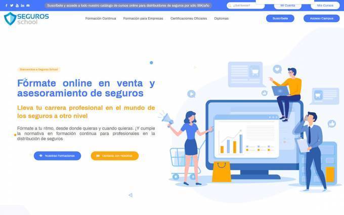 La Escuela de Seguros Campus Asegurador acaba de poner en marcha su nueva plataforma de formación continua, Seguros School, para distribuidores de seguros y profesionales del sector asegurador convirtiéndose en la primera escuela online multidispositivo de formación continua con tarifa plana pensada 100% online para el sector asegurador.