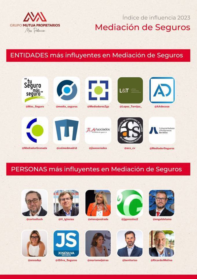 Como cada año, y ya va por la VI edición, Grupo Mutua Propietarios ha publicado el ranking de las 10 entidades y 10 personas más influyentes de la mediación en Twitter. Para elegir quiénes entran en el listado en función de la notoriedad de los perfiles, se analizaron todas las conversaciones en Twitter del último año (más de 12.000 menciones), a través de la herramienta de escucha social Brandwatch, correspondientes a todas aquellas cuentas activas que incluyesen términos conectados a 'Mediación de Seguros'.
