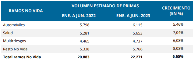 Por su parte, No Vida también está marcando un buen rumbo, creciendo un 6,6% su volumen total de primas, que asciende a 22.271 millones. De este total, 6.115 millones corresponden a Autos, que sigue siendo el principal ramo del segmento tras aumentar su facturación un 5,46%. Mientras, Salud sigue imparable un trimestre más al incrementar su recaudación un 7,04% en los 6 primeros meses del ejercicio, dejando su volumen de primas en 5.653 millones.