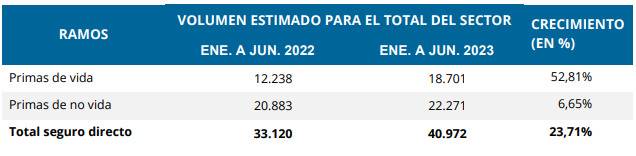 El sector asegurador español arrancó el ejercicio 2023 con una sonrisa y, tres meses después, no se le ha borrado de la cara. Al cierre del primer semestre, el seguro español facturó 40.972 millones de euros, un 23,7% más que en el mismo periodo del año 2022. Además, esto significa que el sector no ha bajado los brazos de abril a junio y mantiene casi el mismo ritmo de crecimiento con el que se inició el primer trimestre, cuando la recaudación se disparó un 25,5%. Estos datos, recabados por ICEA y difundidos por Unespa, todavía son provisionales pero sirven para hacerse una idea de la buena trayectoria del sector.