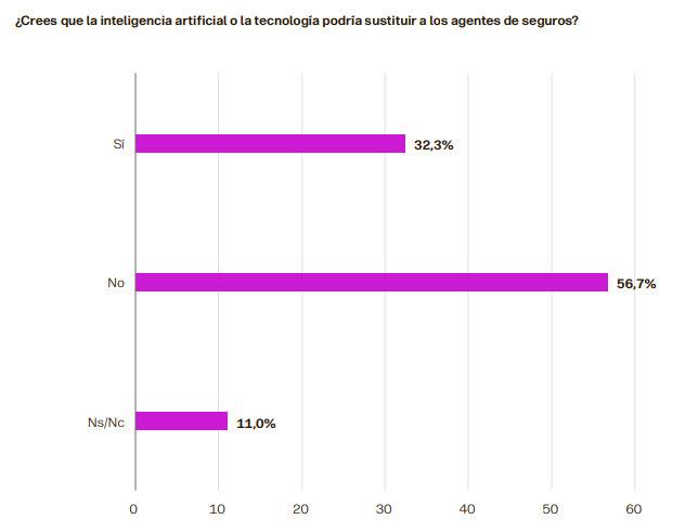 Todos los valores que aportan profesionales como los agentes de seguros no son superados por inteligencia artificial. El III Informe del Mediador de Seguros en España elaborado por Aegon evidencia que el 56,7% de los encuestados -casi 6 de cada 10 - defiende que la labor que realizan los agentes de seguros no puede ser sustituida por la IA. Los principales motivos que argumentan son: el trato personal y cercano que ofrecen los agentes (53,5%), la confianza que aporta la interacción humana (52,4%) y la comprensión de las necesidades específicas de los asegurados (47,7%). "Estos factores no solo refuerzan la vigencia de los agentes, sino que evidencian la necesidad de un acompañamiento cercano cuando se trata de tomar decisiones sobre salud o protección", expone Aegon.