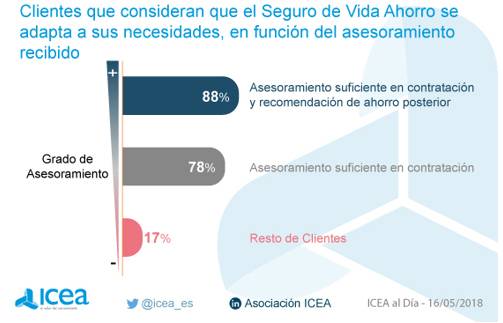 El Barómetro de Experiencia del Cliente de Vida que elabora ICEA ha puesto de manifiesto la importancia del asesoramiento a la hora de contratar estos seguros. Según el mismo, los clientes que reciben más asesoramiento señalan que el producto contratado se adapta mejor a sus necesidades. Esta relación se constata tanto en la fase inicial de contratación como en las recomendaciones de ahorro posteriores. El informe muestra también que la mayor explicación de los productos incide de "manera importante en la lealtad y recomendación" de estos clientes sobre los seguros de Vida Ahorro.