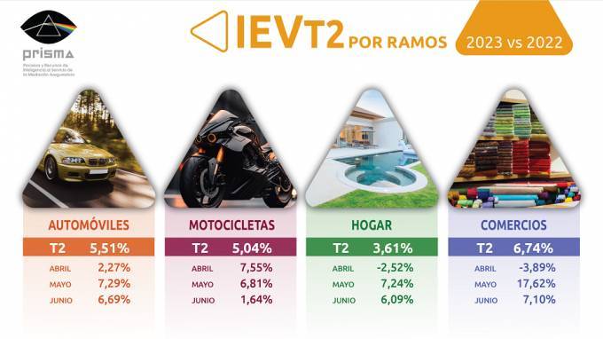 En cuanto a los ramos analizados, en Comercios el crecimiento fue del 6,64%, tras caer en abril (-3,89%) y recuperar en mayo (+17,62%) y junio (+7,10%). Según el informe, esa variación positiva en la segunda mitad del trimestre podría estar relacionada con el aumento en la creación de sociedades mercantiles en mayo y junio (+14%), según el INE. La variación del número de nuevas pólizas emitidas fue casi nula (+0,14%), por lo que toma especial relevancia en el aumento del volumen de ventas el incremento de la prima en un 3,6%.